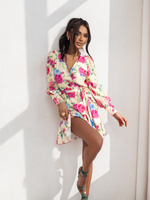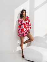 Sukienka "ANNA" krótka - Kwiaty Fuksja
